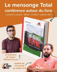 L’équipe du Farmer Case vous invite ce vendredi 3 octobre prochain à la conférence de Mickaël Correia, journaliste de Médiapart, qui signe l’enquête « Le Mensonge Total ». Pendant deux ans, il a enquêté sur les pratiques du géant pétrolier: de la fabrique du doute et la production de messages climatosceptiques à la poursuite de projets pétroliers climaticides (TE est le numéro deux mondial des mégagisements fossiles avec ses 23 bombes climatiques) en passant par un discours de greenwashing.