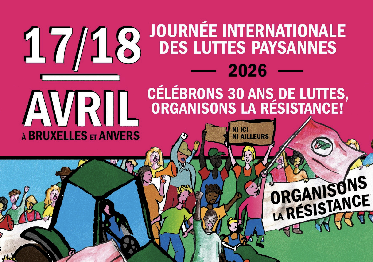 Cette année, la journée internationale des luttes paysannes célèbre ses 30 ans : 30 années de luttes, de victoires (ou de défaites), de construction de mouvements et de solidarités.  Faisons de ce moment un festival de résistances, avec tout un programme militant et convivial les vendredi 17 et samedi 18 avril! ⇒ Inscris-toi par ici : https://tinyurl.com/luttespaysannes